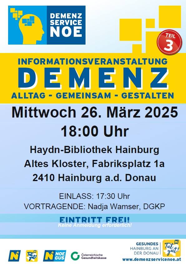 26.03.2025 Informationsveranstaltung Demenz - Alltag gemeinsam gestalten Vortrag der Gesunden Gemeinde Hainburg