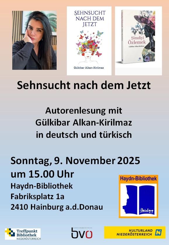 09.11.2025 Sehnsucht nach dem Jetzt - Simdiyi Özlemek Autorenlesung mitGülkibar Alkan-Kirilmazin deutsch und türkischam Sonntag, den 9. November2025, um 15.00 Uhr