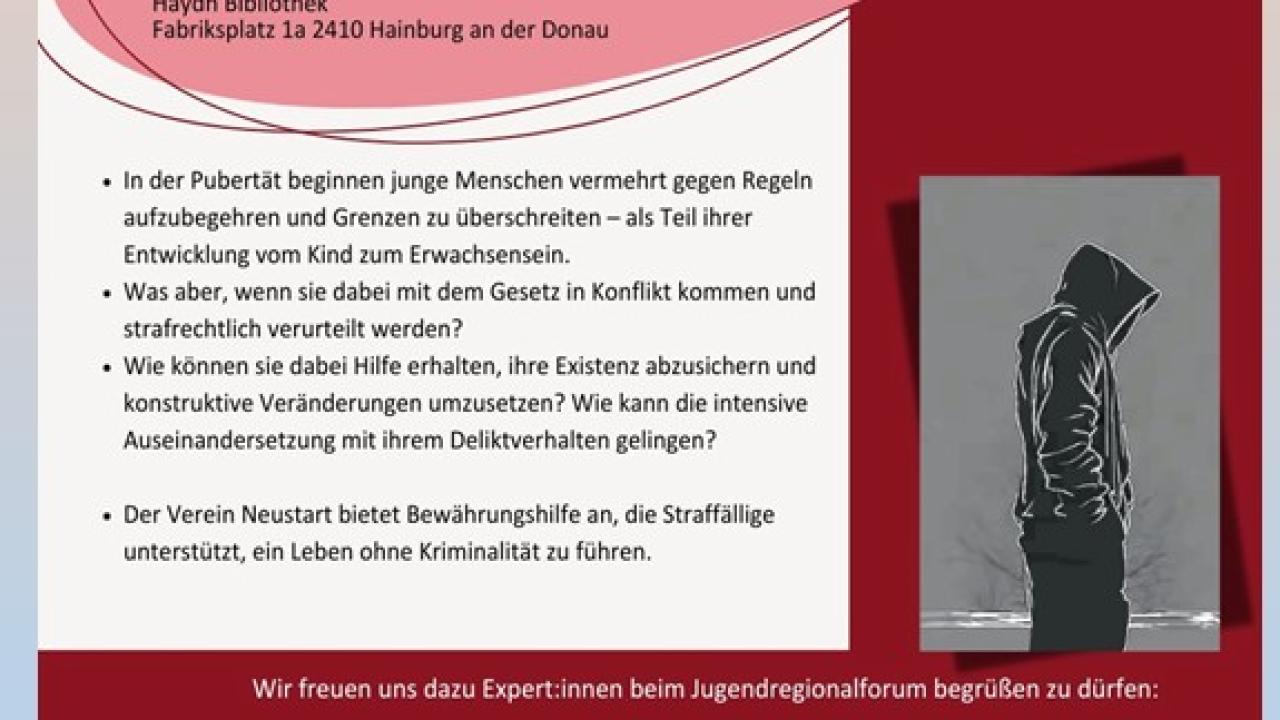 28.01.2026 Jugendregionalforum - Wenn Jugendliche straffällig werden... Bewährungshilfe & Jugendarbeit als Unterstützungssysteme für den Neustart.28.01.2026 14.00 bis 16.00 Uhr
