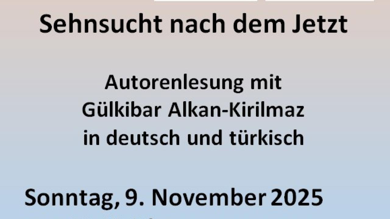 09.11.2025 Sehnsucht nach dem Jetzt - Simdiyi Özlemek Autorenlesung mitGülkibar Alkan-Kirilmazin deutsch und türkischam Sonntag, den 9. November2025, um 15.00 Uhr